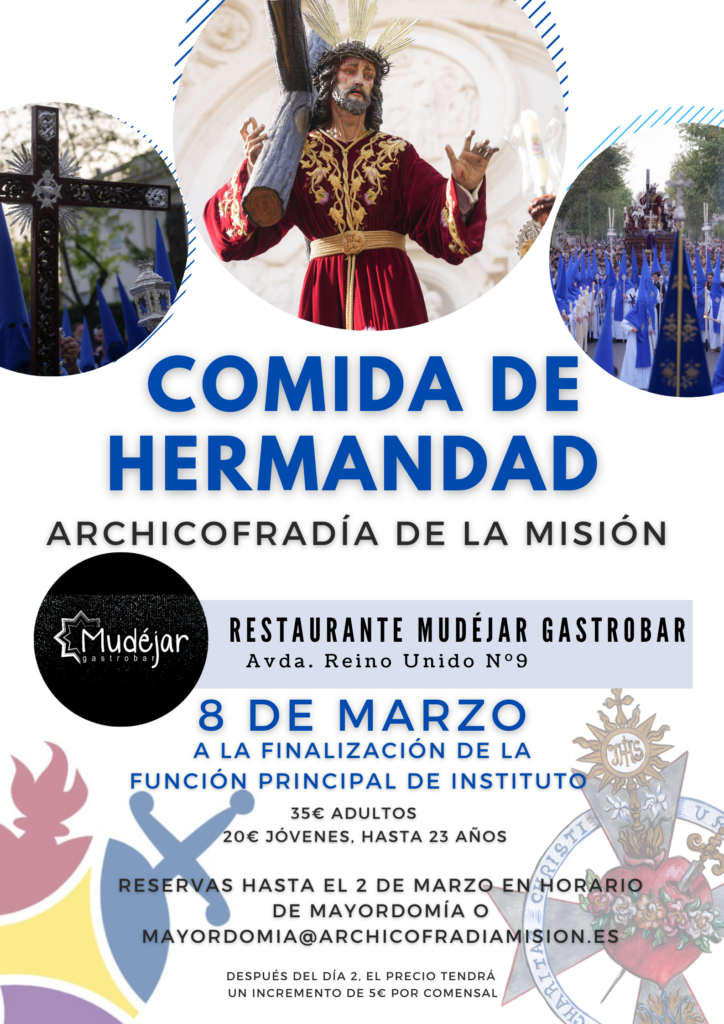 El domingo, 8 de marzo, a la finalización de la Función Principal de Instituto, celebraremos la tradicional ▶️ COMIDA DE